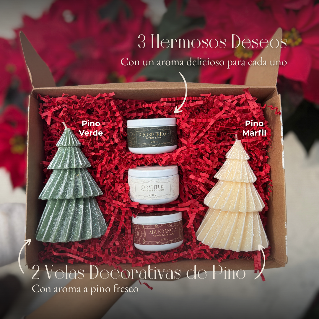 Mirum Felices Fiestas es el regalo perfecto para consentir a tus seres queridos en esta navidad. El kit Cosy Season te ayuda para atraer abundancia, gratitud y prosperidad a tu vida. Los pinos aromáticos da el toque final para decorar tu hogar y envolverlo con su esencia de pino. Todo envuelto en una caja de regalo con diseño navideño.
