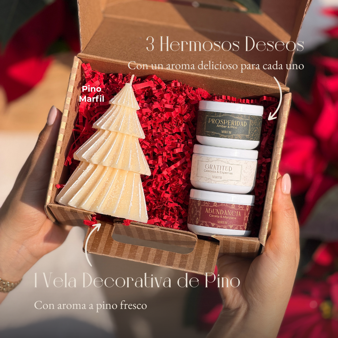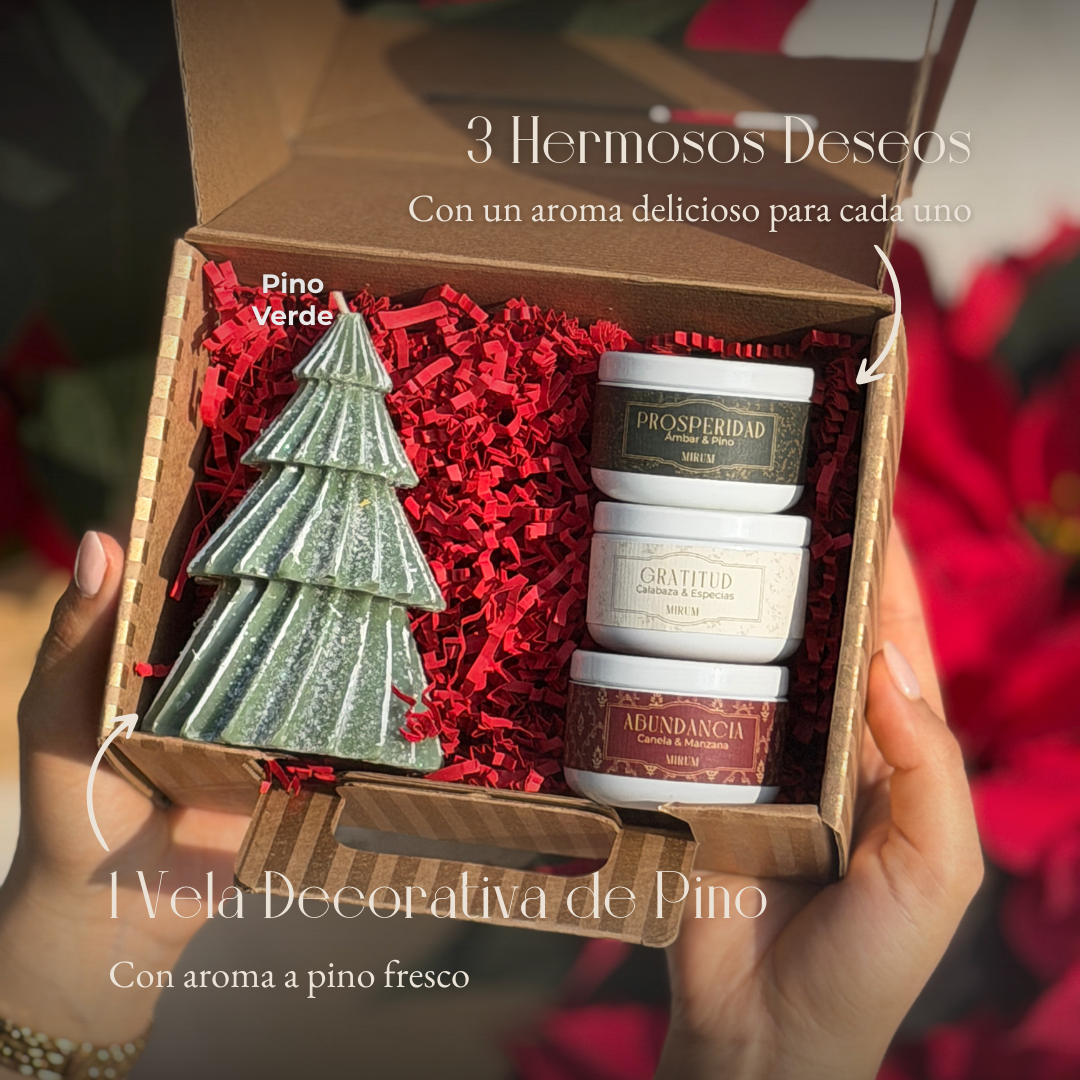 Mirum Merry Box es el regalo perfecto para consentir a tus seres queridos en esta navidad. El kit Cosy Season te ayuda para atraer abundancia, gratitud y prosperidad a tu vida. El pino aromático da el toque final para decorar tu hogar y envolverlo con su esencia de pino. Todo envuelto en una caja de regalo con diseño navideño.