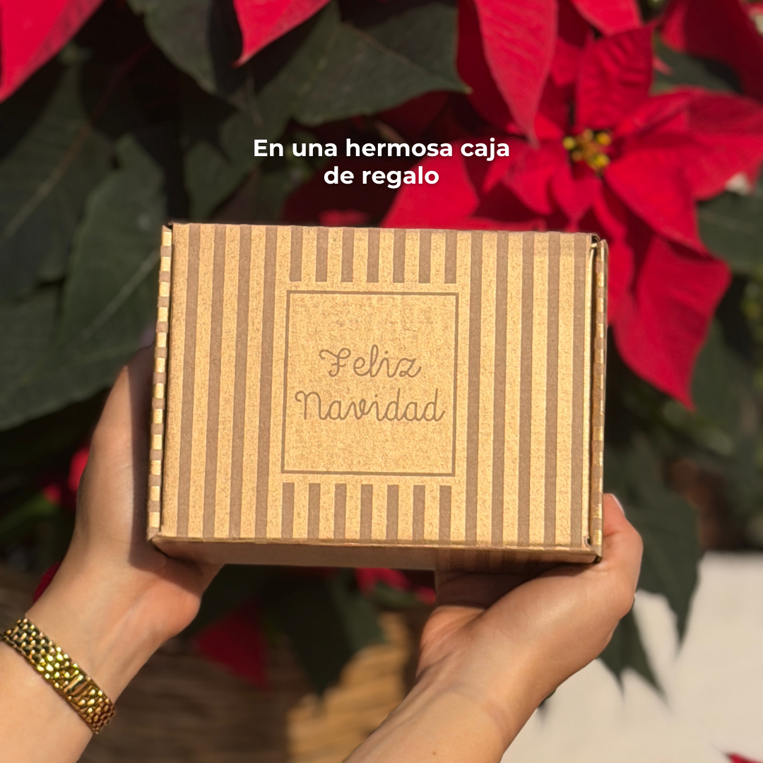 Todo envuelto en una hermosa caja de regalo con diseño navideño.
