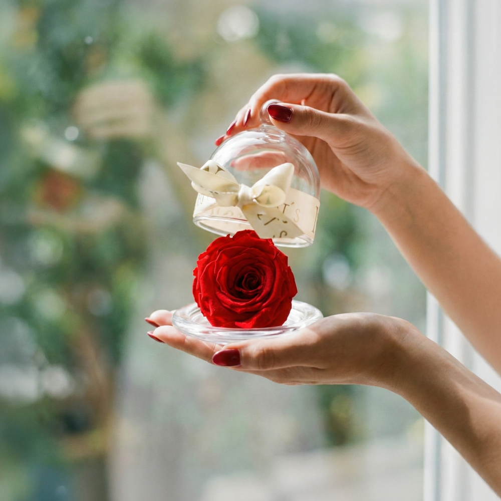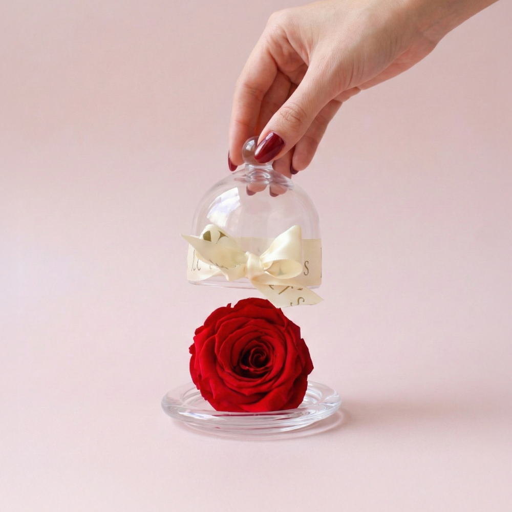 Presentación bonita para adornar cualquier espacio que da un toque mágico a la rosa.